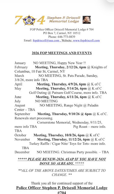 2026 FOP 704 Membership Cards will be mailed out shortly.